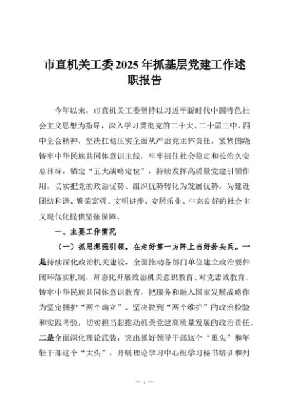 / 【七哥公文】2025年:市直机关工委2025年抓基层党建工作述职报告+更多免费公文+VX:QiGeGongWen2024