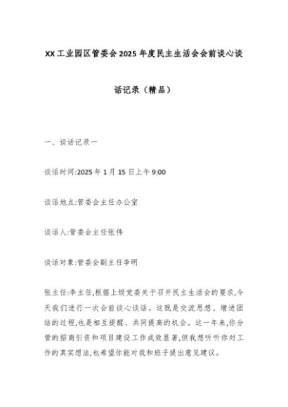 【七哥公文】2025年:XX工业园区管委会2025年度民主生活会会前谈心谈话记录(精品)_副本+更多免费公文+VX:QiGeGongWen2024