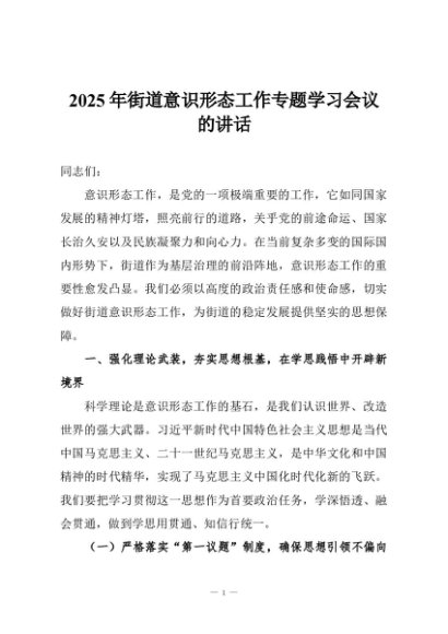 / 【七哥公文】2025年:2025年街道意识形态工作专题学习会议的讲话+更多免费公文+VX:QiGeGongWen2024