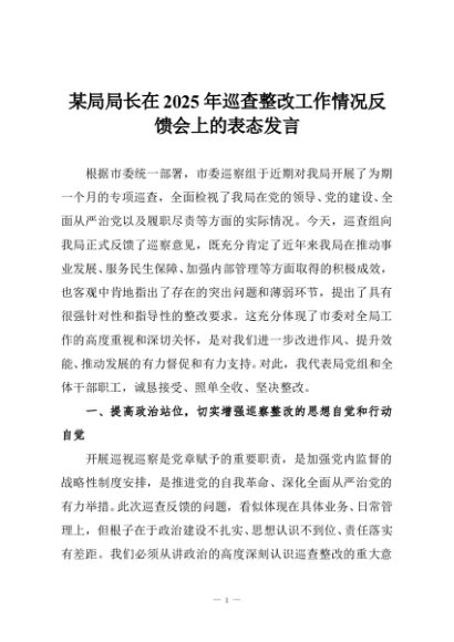 【七哥公文】2025年:某局局长在2025年巡查整改工作情况反馈会上的表态发言+更多免费公文+VX:QiGeGongWen2024