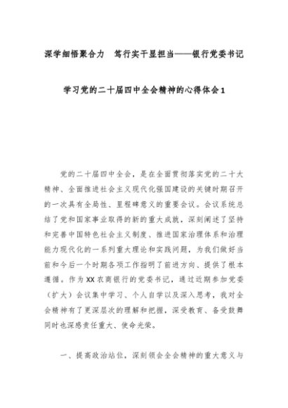 【七哥公文】2025年:深学细悟聚合力 笃行实干显担当——银行党委书记学习党的二十届四中全会精神的心得体会1_副本+更多免费公文+VX:QiGeGongWen2024