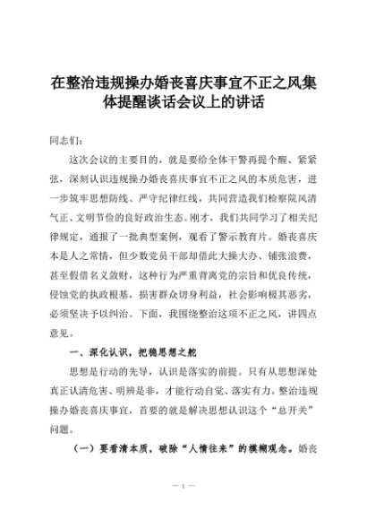 【七哥公文】2025年:在整治违规操办婚丧喜庆事宜不正之风集体提醒谈话会议上的讲话+更多免费公文+VX:QiGeGongWen2024
