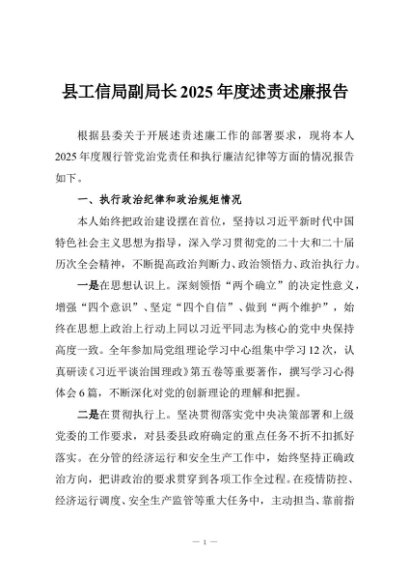/ 【七哥公文】2025年:县工信局副局长2025年度述责述廉报告+更多免费公文+VX:QiGeGongWen2024