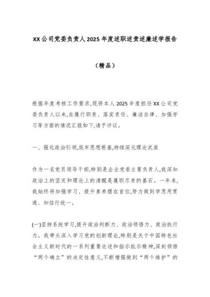 【七哥公文】2025年:XX公司党委负责人2025年度述职述责述廉述学报告(精品)_副本+更多免费公文+VX:QiGeGongWen2024