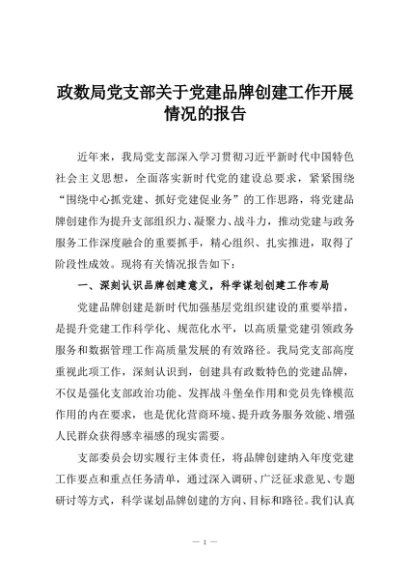 / 【七哥公文】2025年:政数局党支部关于党建品牌创建工作开展情况的报告+更多免费公文+VX:QiGeGongWen2024