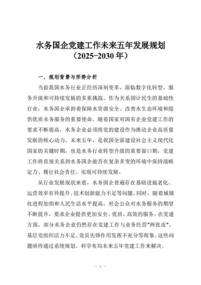 【七哥公文】2025年:水务国企党建工作未来五年发展规划(2025-2030年)+更多免费公文+VX:QiGeGongWen2024