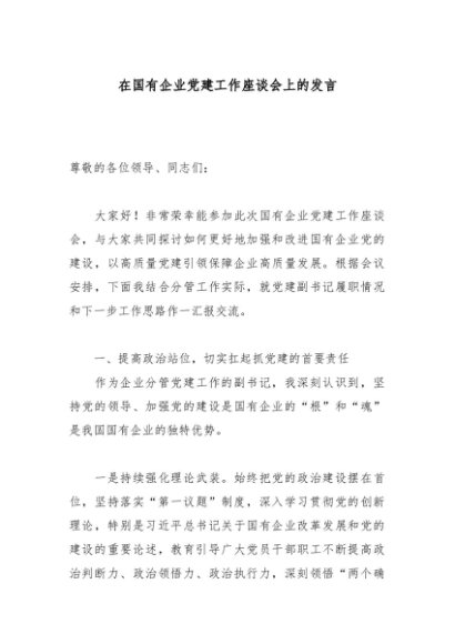/ 【七哥公文】2025年:在国有企业党建工作座谈会上的发言_副本+更多免费公文+VX:QiGeGongWen2024