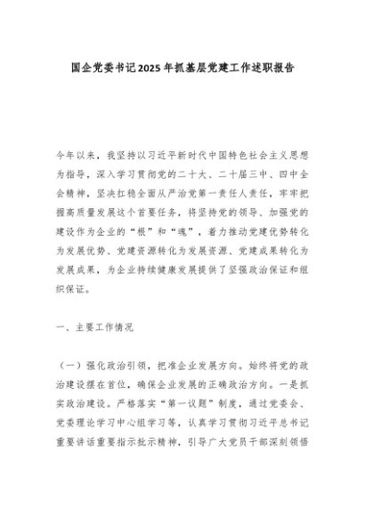 【七哥公文】2025年:国企党委书记2025年抓基层党建工作述职报告_副本+更多免费公文+VX:QiGeGongWen2024