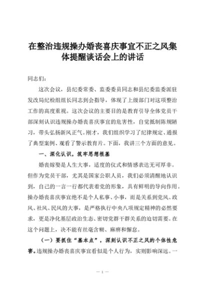 【七哥公文】2025年:在整治违规操办婚丧喜庆事宜不正之风集体提醒谈话会上的讲话+更多免费公文+VX:QiGeGongWen2024