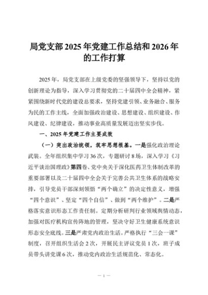 【七哥公文】2025年:局党支部2025年党建工作总结和2026年的工作打算+更多免费公文+VX:QiGeGongWen2024