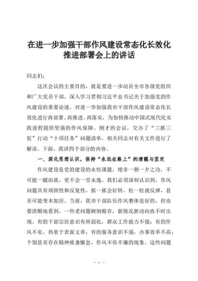 【七哥公文】2025年:在进一步加强干部作风建设常态化长效化推进部署会上的讲话+更多免费公文+VX:QiGeGongWen2024