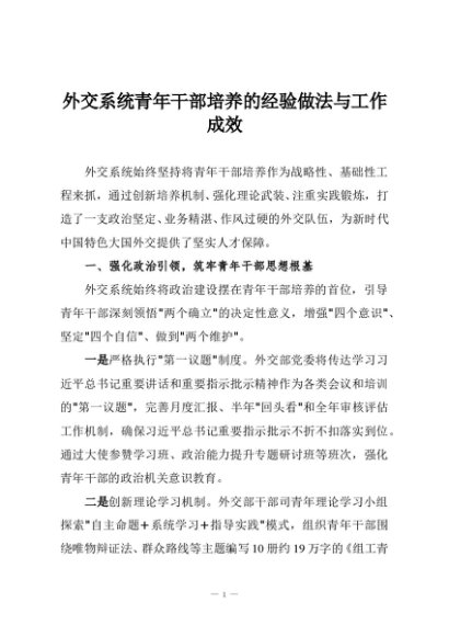 / 【七哥公文】2025年:外交系统青年干部培养的经验做法与工作成效+更多免费公文+VX:QiGeGongWen2024