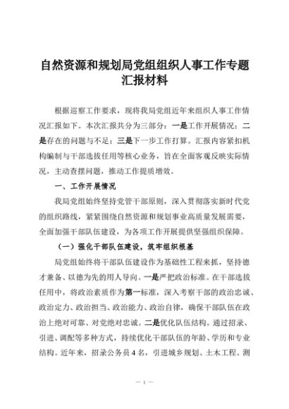 / 【七哥公文】2025年:自然资源和规划局党组组织人事工作专题汇报材料+更多免费公文+VX:QiGeGongWen2024
