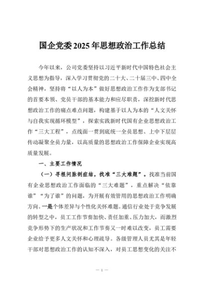 / 【七哥公文】2025年:国企党委2025年思想政治工作总结+更多免费公文+VX:QiGeGongWen2024