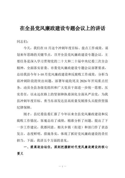 / 【七哥公文】2025年:在全县党风廉政建设专题会议上的讲话+更多免费公文+VX:QiGeGongWen2024