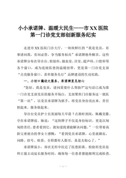 【七哥公文】2025年:小小承诺牌、温暖大民生——市XX医院第一门诊党支部创新服务纪实+更多免费公文+VX:QiGeGongWen2024