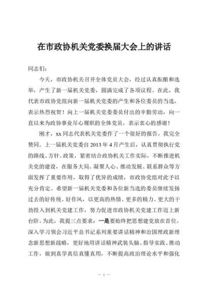/ 【七哥公文】2025年:在市政协机关党委换届大会上的讲话+更多免费公文+VX:QiGeGongWen2024