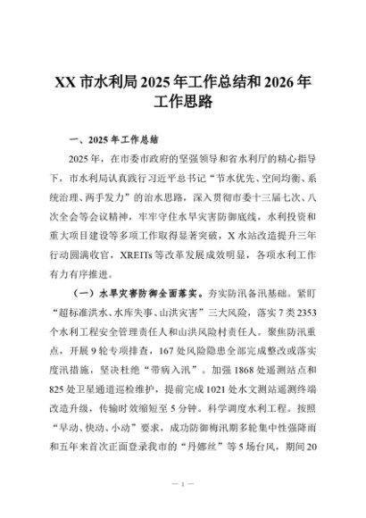 / 【七哥公文】2025年:XX市水利局2025年工作总结和2026年工作思路+更多免费公文+VX:QiGeGongWen2024