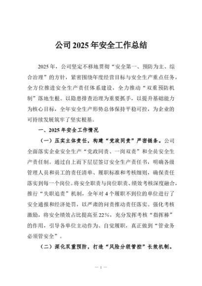 / 【七哥公文】2025年:公司2025年安全工作总结+更多免费公文+VX:QiGeGongWen2024
