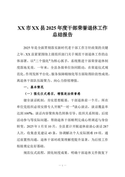 / 【七哥公文】2025年:XX市XX县2025年度干部荣誉退休工作总结报告+更多免费公文+VX:QiGeGongWen2024