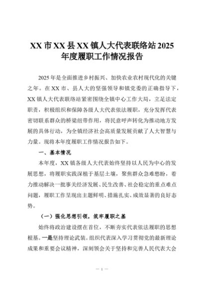 【七哥公文】2025年:XX市XX县XX镇人大代表联络站2025年度履职工作情况报告+更多免费公文+VX:QiGeGongWen2024