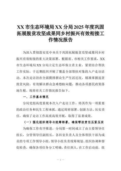 【七哥公文】2025年:XX市生态环境局XX分局2025年度巩固拓展脱贫攻坚成果同乡村振兴有效衔接工作情况报告+更多免费公文+VX:QiGeGongWen2024
