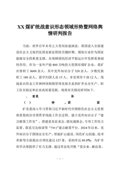 / 【七哥公文】2025年:XX煤矿统战意识形态领域形势暨网络舆情研判报告+更多免费公文+VX:QiGeGongWen2024