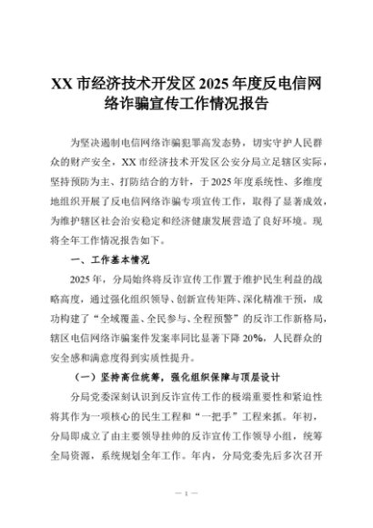 【七哥公文】2025年:XX市经济技术开发区2025年度反电信网络诈骗宣传工作情况报告+更多免费公文+VX:QiGeGongWen2024