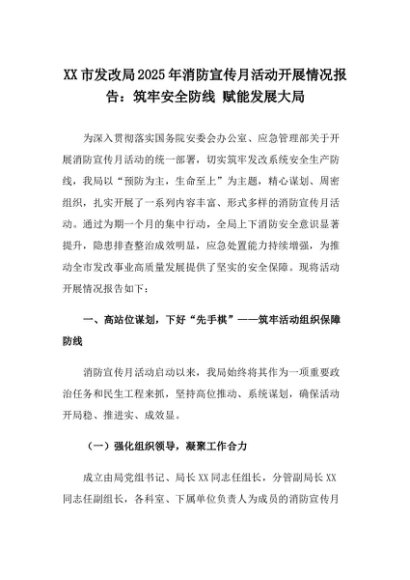 【七哥公文】2025年:XX市发改局2025年消防宣传月活动开展情况报告:筑牢安全防线 赋能发展大局+更多免费公文+VX:QiGeGongWen2024