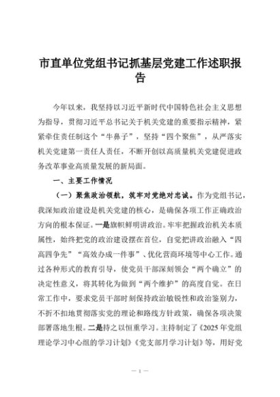 / 【七哥公文】2025年:市直单位党组书记抓基层党建工作述职报告+更多免费公文+VX:QiGeGongWen2024