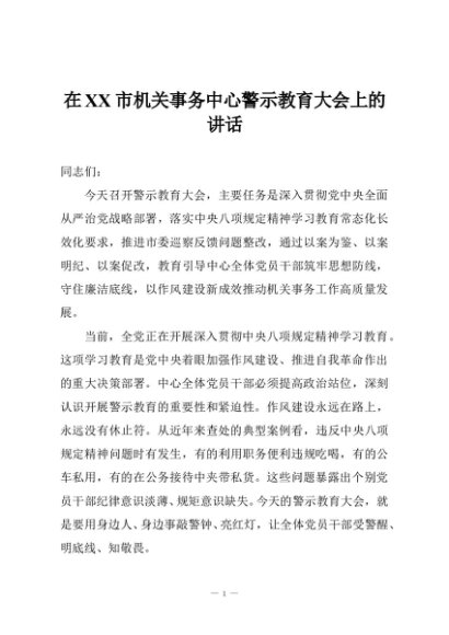 / 【七哥公文】2025年:在XX市机关事务中心警示教育大会上的讲话+更多免费公文+VX:QiGeGongWen2024
