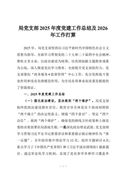 【七哥公文】2025年:局党支部2025年度党建工作总结及2026年工作打算+更多免费公文+VX:QiGeGongWen2024