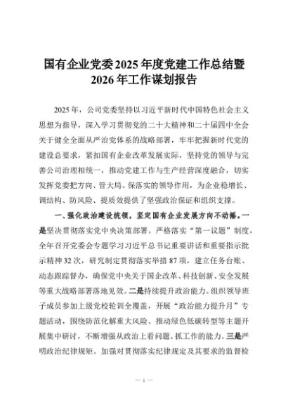 【七哥公文】2025年:国有企业党委2025年度党建工作总结暨2026年工作谋划报告+更多免费公文+VX:QiGeGongWen2024