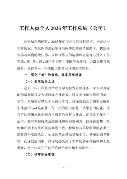 / 【七哥公文】2025年:工作人员个人2025年工作总结(公司)+更多免费公文+VX:QiGeGongWen2024