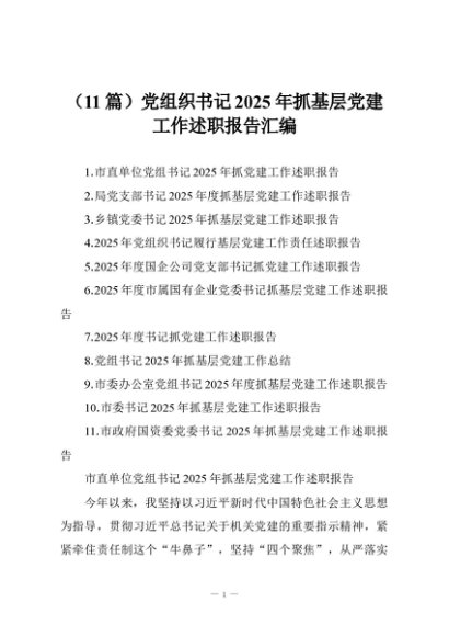 【七哥公文】2025年:(11篇)党组织书记2025年抓基层党建工作述职报告汇编+更多免费公文+VX:QiGeGongWen2024