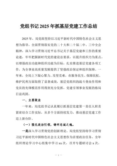 / 【七哥公文】2025年:党组书记2025年抓基层党建工作总结+更多免费公文+VX:QiGeGongWen2024
