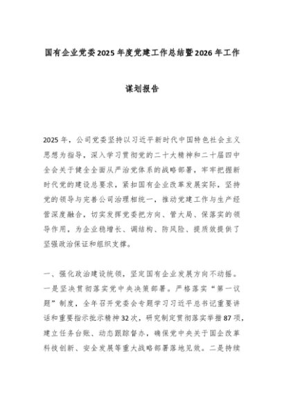 【七哥公文】2025年:国有企业党委2025年度党建工作总结暨2026年工作谋划报告_副本+更多免费公文+VX:QiGeGongWen2024