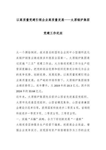【七哥公文】2025年:以高质量党建引领企业高质量发展——太原锅炉集团党建工作纪实_副本+更多免费公文+VX:QiGeGongWen2024