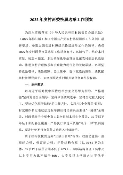 / 【七哥公文】2025年:2025年度村两委换届选举工作预案+更多免费公文+VX:QiGeGongWen2024