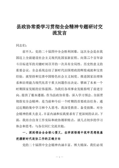 / 【七哥公文】2025年:县政协常委学习贯彻全会精神专题研讨交流发言+更多免费公文+VX:QiGeGongWen2024