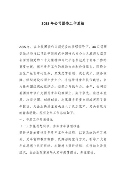 / 【七哥公文】2025年:2025年公司团委工作总结_副本+更多免费公文+VX:QiGeGongWen2024