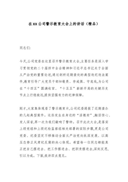/ 【七哥公文】2025年:在XX公司警示教育大会上的讲话(精品)_副本+更多免费公文+VX:QiGeGongWen2024