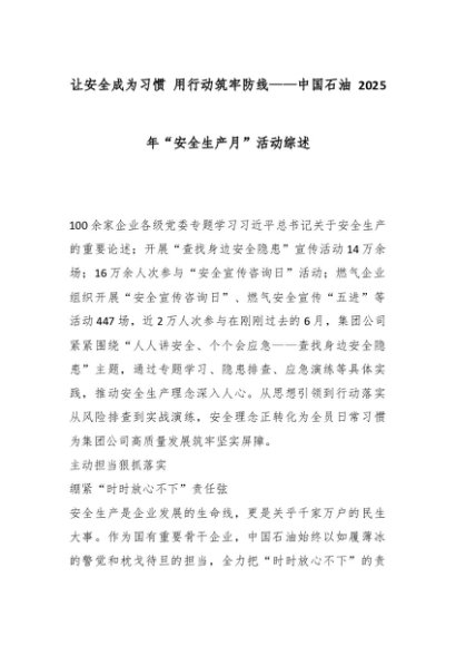 【七哥公文】2025年:让安全成为习惯 用行动筑牢防线——中国石油 2025 年“安全生产月”活动综述_副本+更多免费公文+VX:QiGeGongWen2024