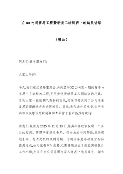 【七哥公文】2025年:在XX公司青马工程暨新员工培训班上的动员讲话(精品)_副本+更多免费公文+VX:QiGeGongWen2024