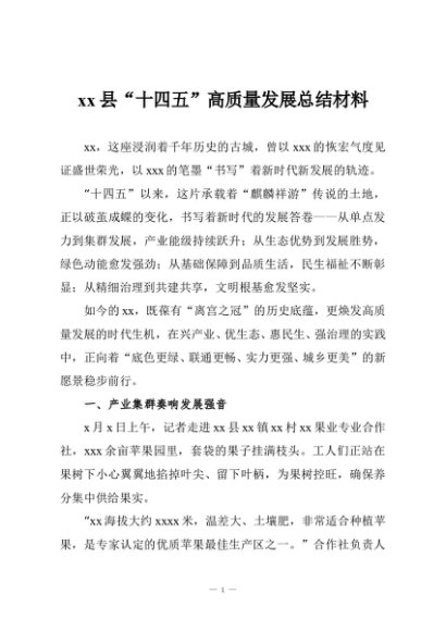 / 【七哥公文】2025年:xx县“十四五”高质量发展总结材料+更多免费公文+VX:QiGeGongWen2024