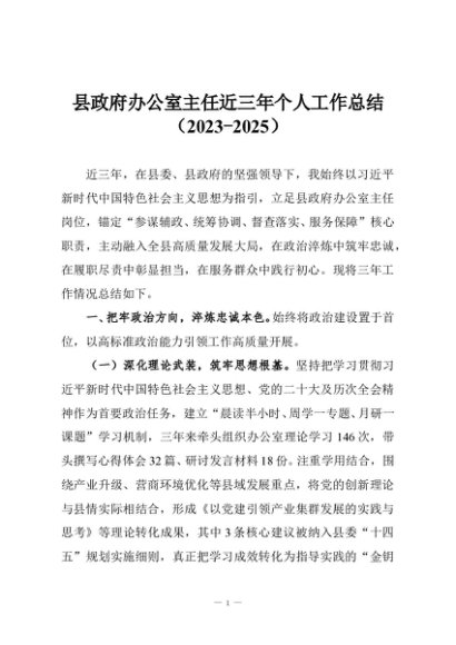 【七哥公文】2025年:县政府办公室主任近三年个人工作总结(2023-2025)+更多免费公文+VX:QiGeGongWen2024
