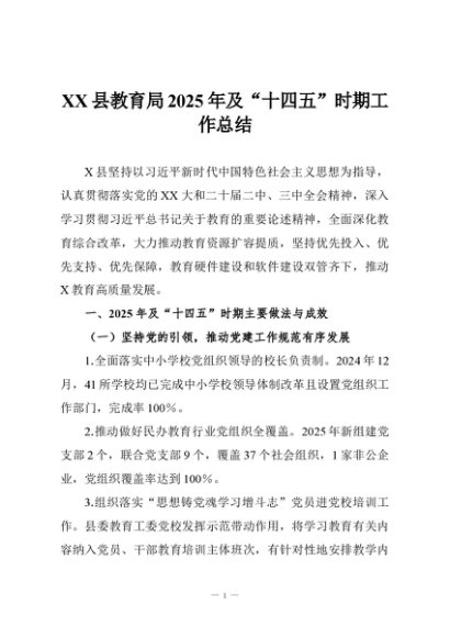 / 【七哥公文】2025年:XX县教育局2025年及“十四五”时期工作总结+更多免费公文+VX:QiGeGongWen2024