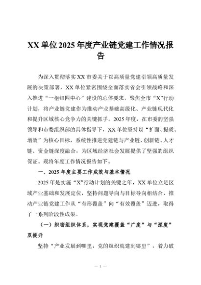 / 【七哥公文】2025年:XX单位2025年度产业链党建工作情况报告+更多免费公文+VX:QiGeGongWen2024