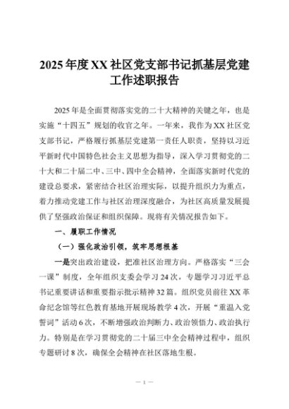 【七哥公文】2025年:2025年度XX社区党支部书记抓基层党建工作述职报告+更多免费公文+VX:QiGeGongWen2024