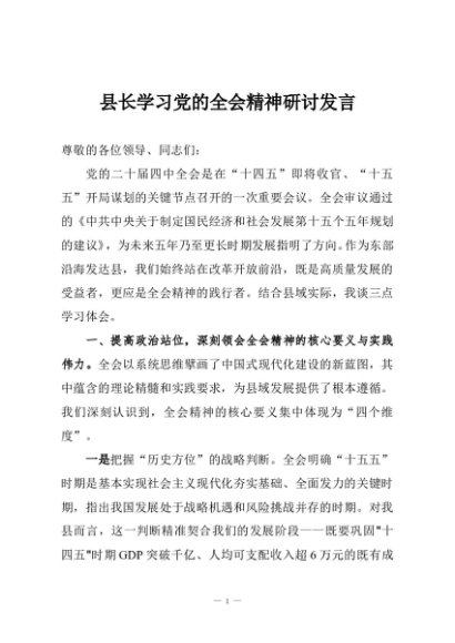 / 【七哥公文】2025年:县长学习党的全会精神研讨发言+更多免费公文+VX:QiGeGongWen2024